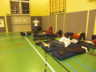 Aangekomen in Nijmegen viel al snel de avond. Vorig jaar mochten we pas laat in de slaapzaal. Dit jaar ging dat iets sneller. Of wij waren wat later.