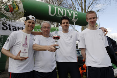 Ik wist op mijn friese tandvlees nog met 30s voorsprong de finishchute binnen te rennen. Whoohoo (ofzo) een heel kleine slechtbezette wedstrijd, maar winnen is altijd leuk.