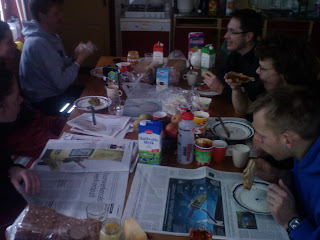 uiteindelijk was iedereen moe en voldaan en kon er ebgonnen worden aan een avondje discussie. Eens even geen sport, maar stevige maatschappelijke discussies, waar een aantal mensen scherp uit de hoek kwamen. Uiteindelijk viel iedereen elkaar natuulijk huilend in de armen;
